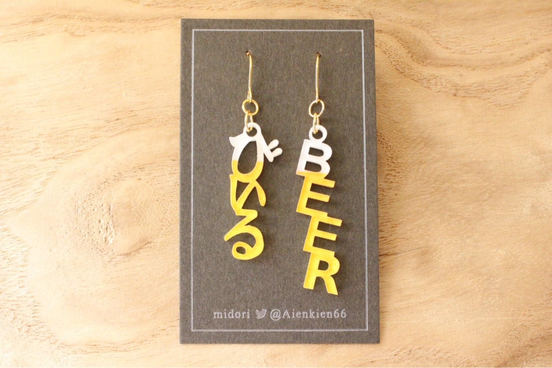 BEER・びいるピアス◇イヤリング変更可 ビール好き
